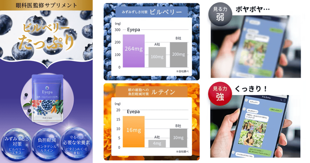 ビタミンAやE、亜鉛といったビタミン、ミネラルもバランスよく配合しています。多角的に目に働きかけるサプリメントで、医師が監修しているという点も安心です。