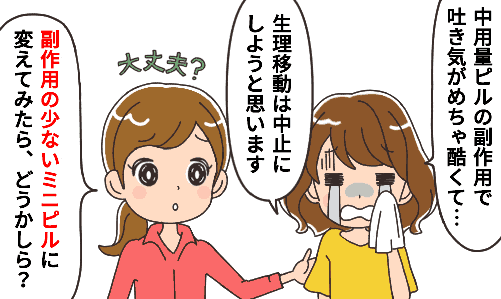「中用量ピル・低用量ピル・ミニピルで生理を調整できるのは分かった」